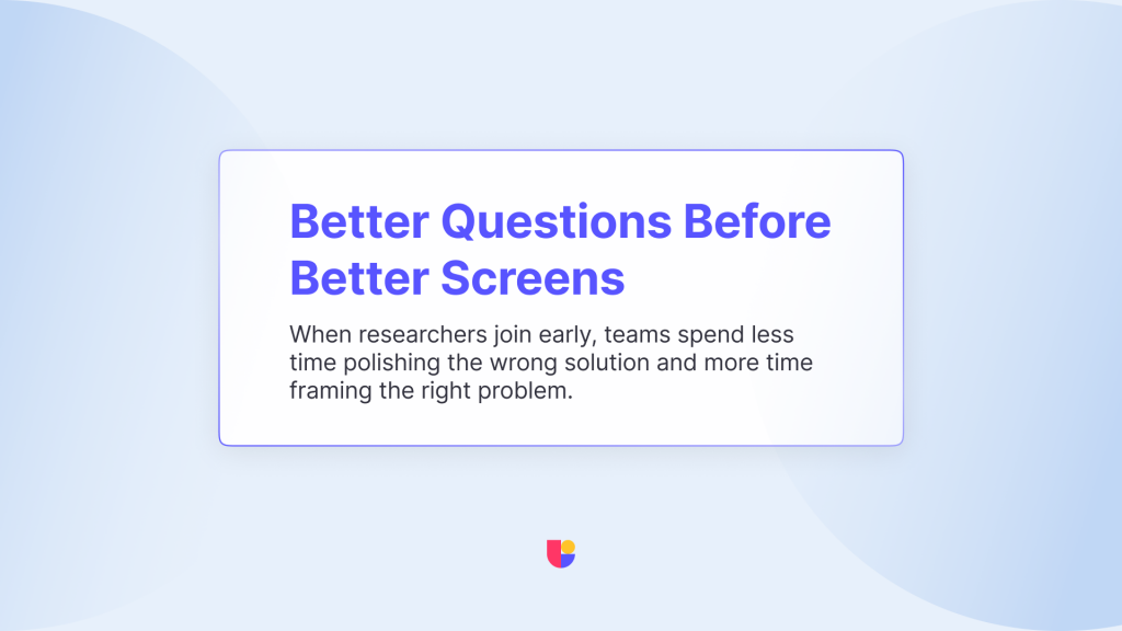 Invite researchers into planning sessions, not only into testing cycles. Instead of asking “what can we test here,” ask “what do we need to understand before we commit.” That small change gives research a seat at the table before decisions solidify.