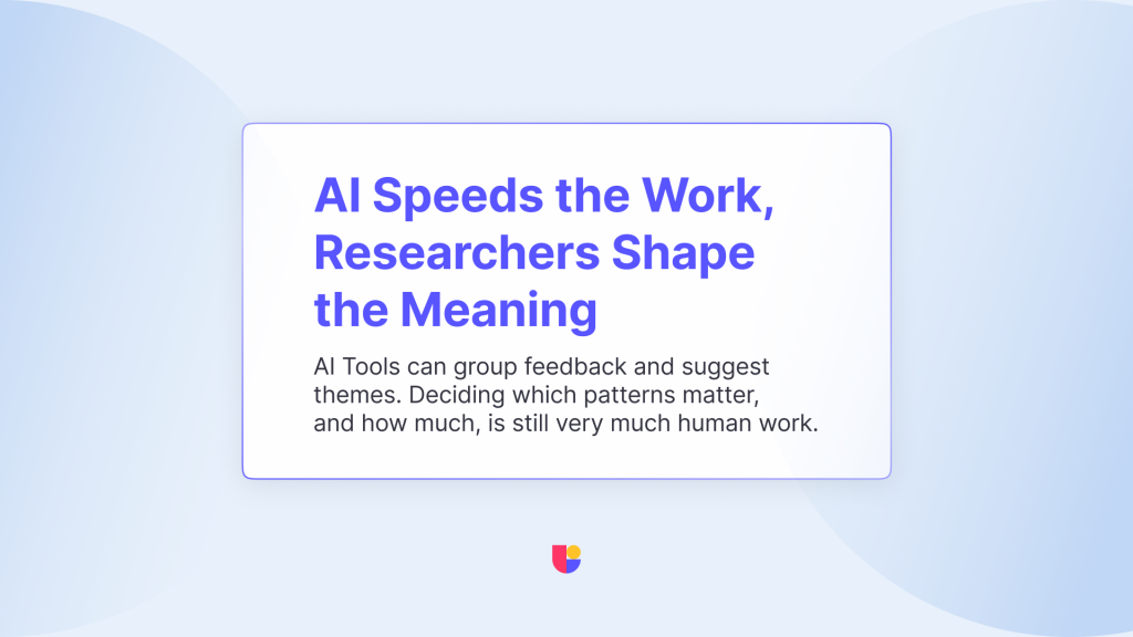 AI can summarize interviews, cluster comments, and suggest themes. On the surface, this might look like a threat to traditional research work. In reality, it has mostly shifted where researchers spend their time.