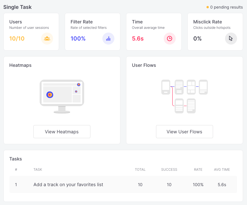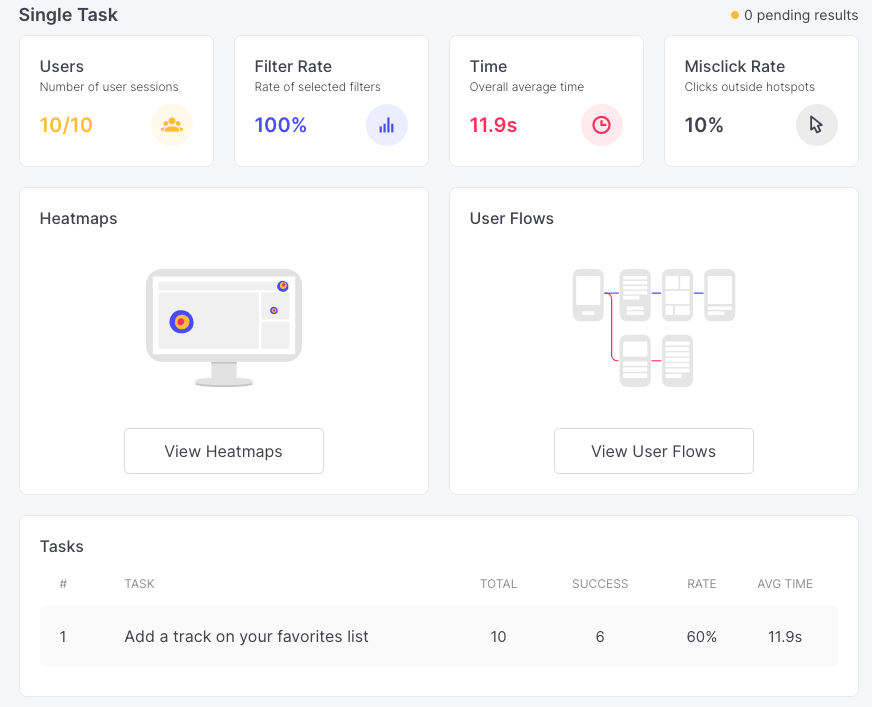 The User Flow report can indicate specific points where testers remained longer or got stuck perhaps and help you make changes to enhance the user experience. The easier testers can navigate through your prototype and complete your task, the happier visitors to your final product will become.