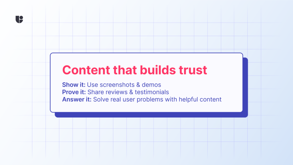 - Visual Proof: Screenshots, screen recordings, and demo videos can help give your audience a real feel for your products and company as a whole.