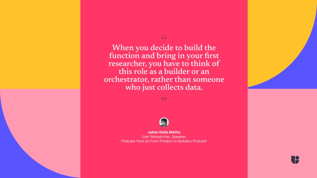 The way I see it, when you decide to build the function and bring in your first researcher, you have to think of this role as a builder or an orchestrator, rather than someone who just collects data. And it’s important that researchers feel this way too.