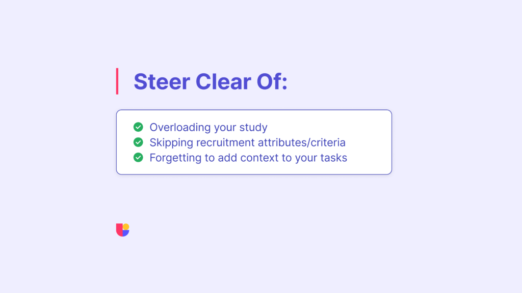 - Overloading your test: Trying to answer too many questions in one session can confuse participants and dilute your findings.