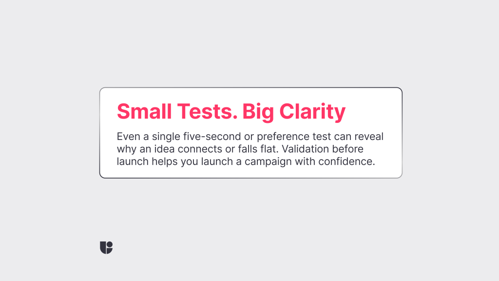 So to sum up the points: If you want to connect your creative performance to real audience understanding, start with a simple user test for quick and easy feedback. This small addition to your workflow gives you user insights that marketing numbers alone can’t provide. They show what’s clear, what’s confusing, and what drives people to act.