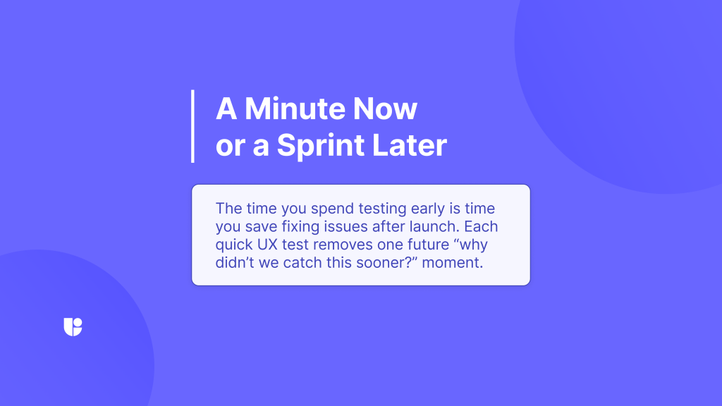 Every minute spent testing early saves hours of rework later. Quick UX testing is not a luxury or a research add-on. It’s the simplest way to make your next release smoother, smarter, and more user-centered. Start with one quick test and see how much it changes the way your team makes decisions. Small studies, big clarity.
