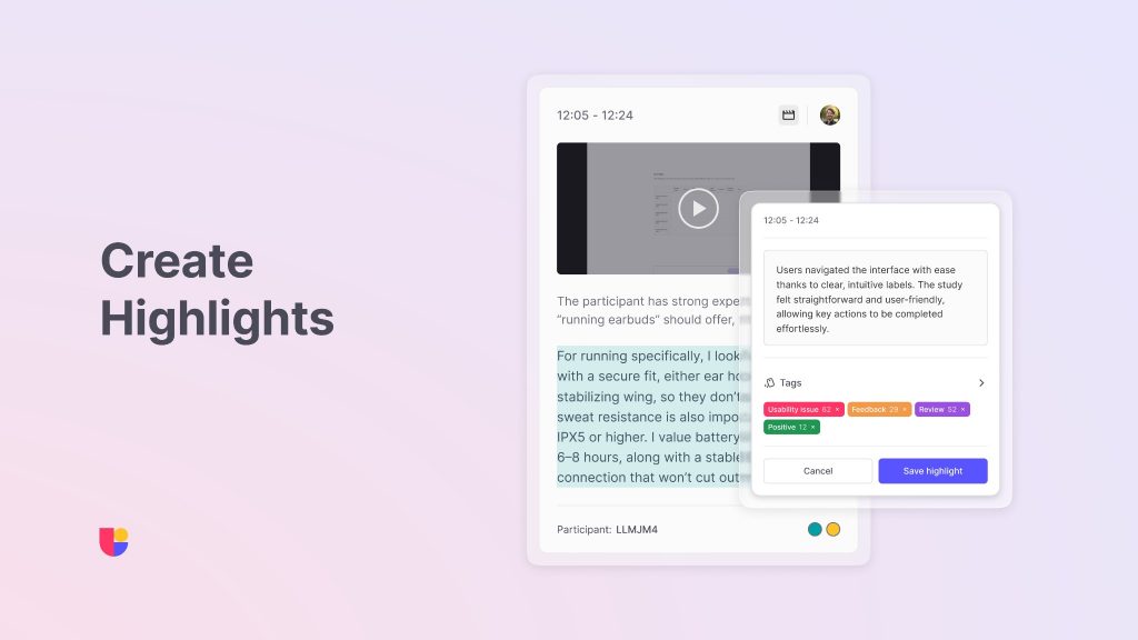 Highlights let you “cut” straight to the moments that matter. You can clip the key parts of a Recording and skip the filler. Researchers save time, teams see only what matters, and stakeholders finally understand how users behave instead of hearing summaries later.