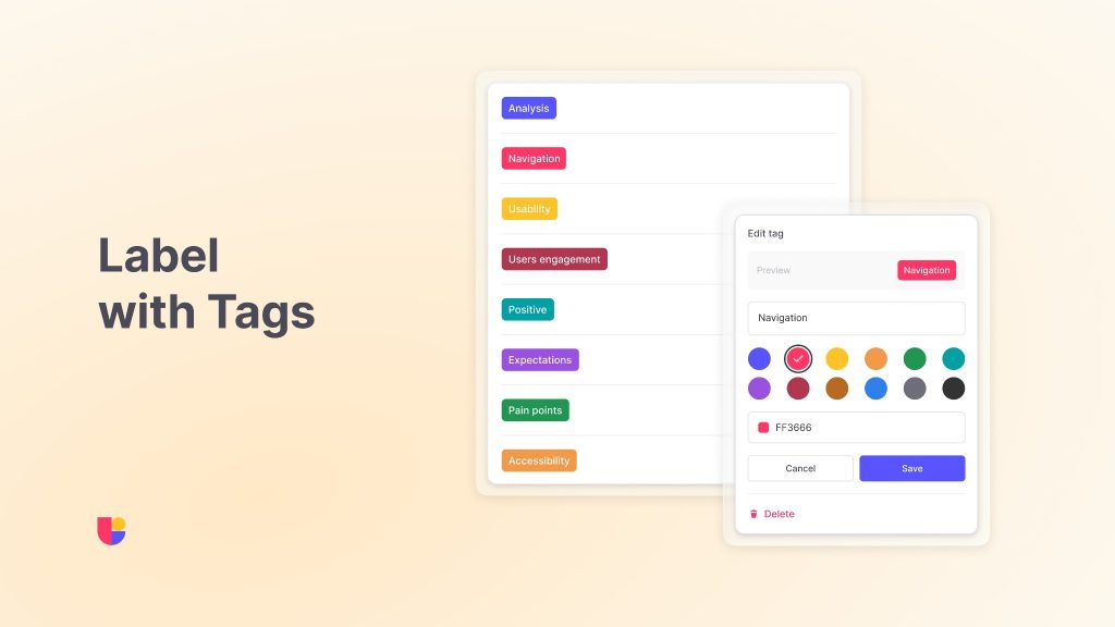 As your highlights start to pile up, Tags keep everything organized. Add labels like friction, delight, or navigation issue to spot recurring themes across sessions. You can also leave notes directly under each Highlight to capture quick thoughts, reactions, or context to make it easy for teammates to understand the purpose behind every clip.
