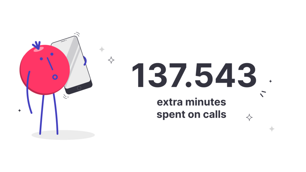 The new normal made us not be in the same office. So, we spend a lot of extra time and minutes on video chats. In total, we spent over 135K extra minutes on Google Meet and Zoom calls.