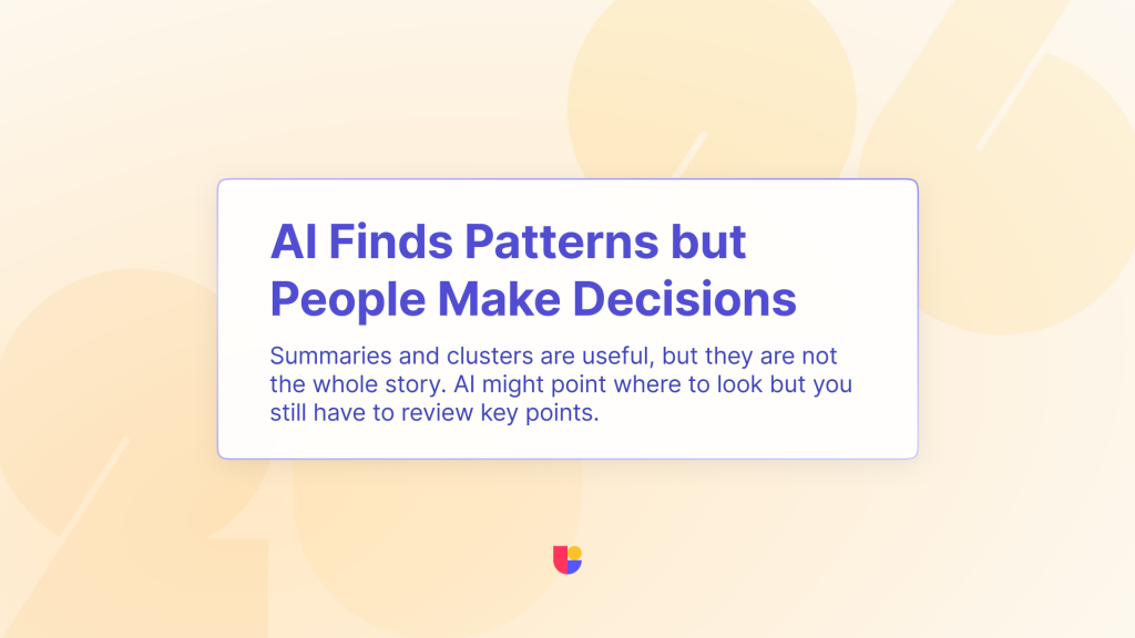 On real projects, the most impactful work still depended on a UX researcher or designer. For example, an AI summary might say participants “found the flow simple,” while the recordings revealed long pauses or quiet frustration before they reached the final screen. The pattern was technically positive, but the feeling was not. Only a human, watching and listening, could make that distinction but we can’t ignore that AI made discovering where to look a faster.
