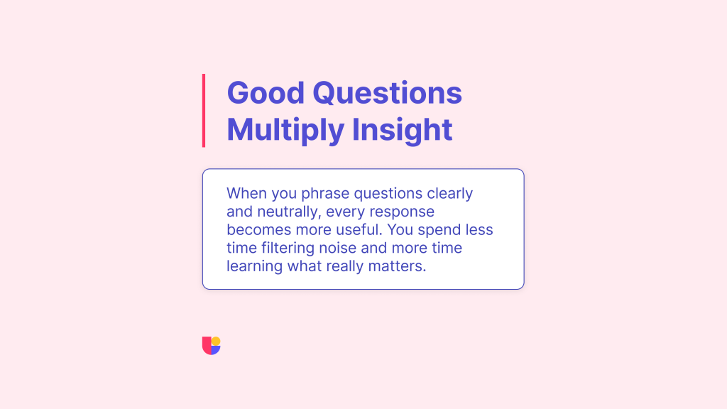 For more practical advice on writing unbiased and effective research questions, Nielsen Norman Group’s guide on Writing Good Survey Questions is also a great reference to keep handy.